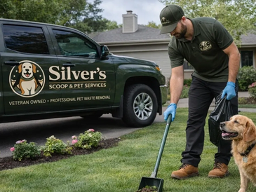 At Silver’s Scoop & Pet Services, our story starts with a veteran-owned commitment to service, reliability, and a genuine love for animals. Founded by a lifelong dog lover and Army veteran, our mission is simple: treat every customer and every pet like family. We know your pets are part of your home, and we believe you deserve a clean, safe yard without the hassle. Our team of experienced professionals are passionate about animals and dedicated to providing the best possible care to your furry family members. We take pride in going above and beyond, doing whatever it takes to make sure both you and your pets are happy with every visit.